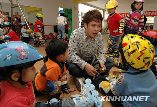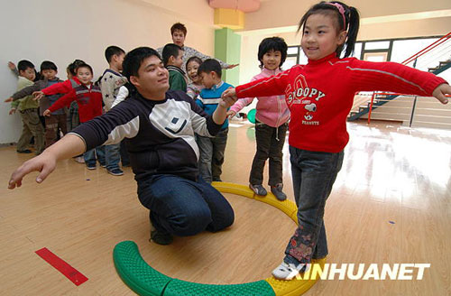 2008年畢業(yè)于遼寧省師范大學(xué)的兩位男大學(xué)生趙雷與王健應(yīng)聘到錦州市一家民辦幼兒園任幼兒教師,他們的到來為幼兒園帶來了新的教育理念,增添了堅(jiān)毅陽剛之氣,受到孩子們的喜愛,兩位“男阿姨”也漸漸地愛上了這個職業(yè)。(李鐵成 攝)
