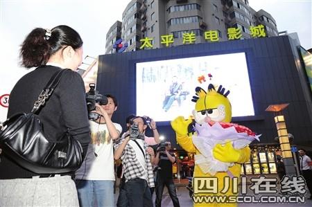 昨晚6點40分,周先生提前請來“助陣”的人群就開始在影城門口聚集起來。周先生的幾名同事忙碌地擺弄著幾束彩花,準(zhǔn)備等一會兒派上用場。嗅到點反常的路人也紛紛駐足打聽。
