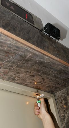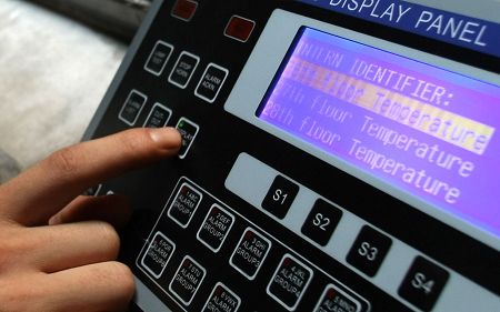 在昨日的試驗中,工作人員在26層電梯門上方的煙感器附近點燃打火機,當溫度超過58℃后,樓道內(nèi)的語音報警響起,“各位業(yè)主,本樓層發(fā)生火災,請不要驚慌,本樓層電梯暫時停止使用,請業(yè)主改乘其他樓層的電梯疏散。”隨即,26層的電梯按鈕“失靈”,其他樓層電梯仍正常運行。