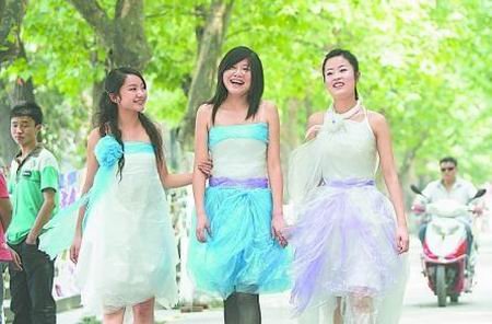 昨日中午,成都理工大學(xué)第四教學(xué)樓旁擺起了展臺(tái),七名身著用藍(lán)、黑、白相間的塑料薄膜做成的“塑料時(shí)裝”的女學(xué)生登場(chǎng),引來(lái)了陣陣掌聲。據(jù)介紹,這些學(xué)生所穿的“塑料時(shí)裝”全部采用日常生活中常見的塑料,通過(guò)他們自己獨(dú)立設(shè)計(jì)成衣服,向現(xiàn)場(chǎng)的觀眾宣傳環(huán)保,號(hào)召師生們盡量采用環(huán)保制品,愛護(hù)我們共同的家園。(張歐)