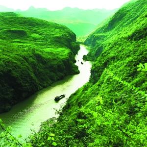 地下河景區(qū)里的云南梯田、微縮長城、洞中黃果樹等景點令人嘆為觀止。撐船在溶洞暗河里穿行,遠遠地就聽見轟隆隆的水流聲,舉目四望,卻見不到一丁點水花,拐了幾個彎之后,一簾瀑布傾瀉而下,帶來意外的驚喜。大自然以其鬼斧神工把中國自然山水與人文建筑的精華濃縮得惟妙惟肖,然后又以乾坤大挪移的手法把它們都囊括到這個溶洞之中,其中究竟,怎一個“奇”字了得?
