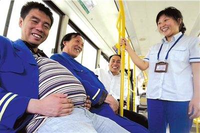 據(jù)639路公交車隊(duì)工作人員介紹,母親節(jié)即將到來(lái),為了更好的服務(wù)特殊乘客,他們利用車輛回站短暫休息的時(shí)間,特意讓一些男司乘人員在衣服里揣上枕頭假扮孕婦,體會(huì)當(dāng)母親的辛苦。參與活動(dòng)的男司乘人員表示,對(duì)于孕婦等需要特殊關(guān)懷的乘客,今后的服務(wù)會(huì)更加體貼周到。(記者郭曉樂(lè) 朱嘉磊攝)