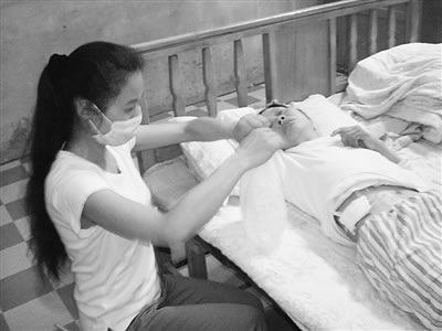 張錦現(xiàn)在每天都會為母親做三次“水透”。為了讓置放在母親體內(nèi)的輸液管不被細(xì)菌感染,她就將家里的窗戶緊閉,以防灰塵進(jìn)入。