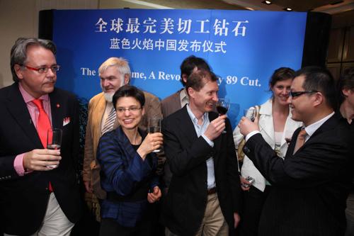 比利時(shí)安特衛(wèi)普政府代表團(tuán)在TESIRO通靈上海亞洲旗艦店對藍(lán)色火焰鉆石在中國上市表示慶賀