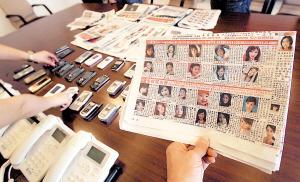 借開門的一瞬間,化裝成物管人員的民警發(fā)現,屋內有3名女子手捧電話,一邊在翻看本子,一邊接電話。在一旁,幾十部手機、小靈通響個不停。