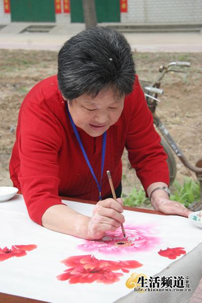 洛陽孟津縣平樂鎮(zhèn)“中國牡丹第一村”組織了一次別開生面的百人畫牡丹活動(dòng)。參加繪畫的上有白發(fā)老翁、老太太,下有七、八歲的學(xué)齡兒童。 吳歆 攝影