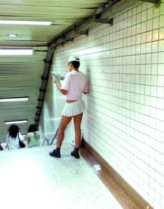 近日,一篇有關(guān)“迷你裙男”的帖子出現(xiàn)在上海幾大論壇,照片中一名男子頭戴白色遮陽(yáng)帽、身著粉色T恤及白色超短裙,在軌交中山公園站內(nèi)倚著墻看報(bào),沒(méi)有正面圖片。