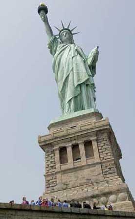 如果要追溯這座神像的來源,可以由當(dāng)年法國為慶賀美國獨立一百周年而贈送一事說起,這座象征著兩國友誼的自由女神像,左手拿著獨立宣言,右手高舉火炬,雙眼平視前方,充份散發(fā)了英姿風(fēng)范。她鼓勵著無數(shù)為實現(xiàn)理想而到美國的移民,因此她不但是紐約的象征,更是美國的象征。