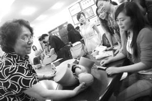 產(chǎn)科專家蓋教授(左)為“產(chǎn)科高級生命支持教程”培訓班講課 記者 姚波 攝