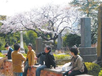 過了些天,石岡先生約我吃中飯,聊中國經(jīng)濟的現(xiàn)狀。飯后他對我說,不遠處有一個青山靈園,是看櫻花的好去處。