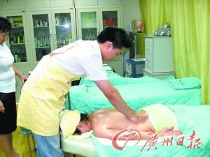 不僅僅是男生去美容,還有更多的男性成為美容工作者。當(dāng)記者走進(jìn)環(huán)市東某美容院時(shí),中醫(yī)學(xué)院本科畢業(yè)的李繼德正在為一名女客戶做背部精油推拿。入院已經(jīng)三個(gè)月,為女性做美容對(duì)他來(lái)說(shuō)并不陌生。