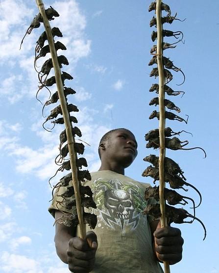 中國(guó)日?qǐng)?bào)網(wǎng)環(huán)球在線消息:你能想象嗎?處處被人喊打的過(guò)街老鼠如今在非洲國(guó)家馬拉維成為了當(dāng)?shù)厝搜壑械摹懊牢丁。?jù)英國(guó)《每日郵報(bào)》8月9日?qǐng)?bào)道,如今不少馬拉維當(dāng)?shù)厝藢㈦缰苹蛘唢L(fēng)干的熟田鼠穿成串沿街叫賣,雖然田鼠“賣相有些猙獰”,但是銷路卻十分不錯(cuò)。