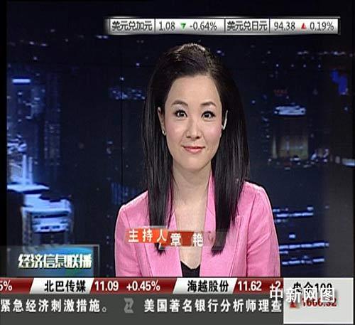 圖為章艷在央視財經(jīng)頻道主持《經(jīng)濟信息聯(lián)播》