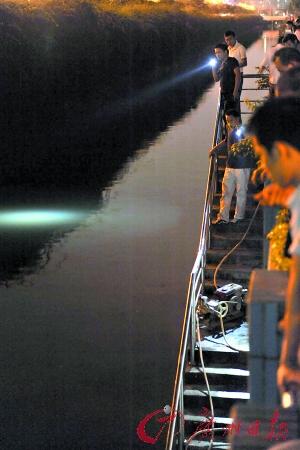 前晚8時許,瀾石大涌岸邊異常熱鬧。一小時前,一對情侶從此跳了下去。70多歲的周伯說,他看到一對男女突然跑向瀾石大涌,“女子好像還蹭了男子兩下,然后就直奔河涌,跳了下去。接著后面的男子也跟著跳了下去!