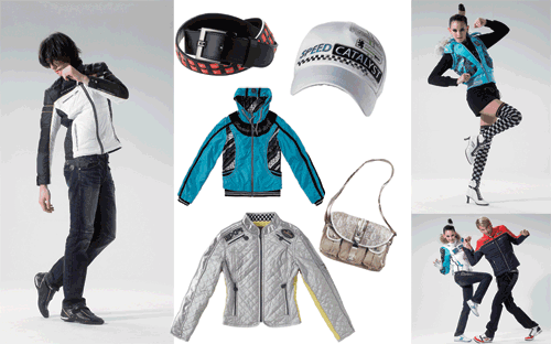 配合著這樣的理念,印滿字母的T恤街頭感十足,一副酷酷的壞壞的樣子讓男生的吸引力上升。外面搭配白色的茄克更顯帥氣清爽,一條做舊的牛仔褲復(fù)古感覺強(qiáng)烈,黑白為主色的運(yùn)動(dòng)鞋與整體的色系相統(tǒng)一。而女裝有以純黑基本色為主色調(diào),羅紋與真皮相結(jié)合,加以局部白色設(shè)計(jì)點(diǎn)綴,整體服裝風(fēng)格給人以簡潔干練的感覺。胸前的立體紋案設(shè)計(jì),將賽車與休閑完美地結(jié)合在一起。白色弧形剪裁分割線,既完美勾勒出女性的優(yōu)美曲線,又凸顯女性自信獨(dú)立的氣質(zhì)。