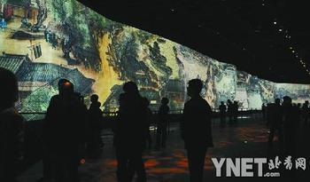 對于這幅電子巨作,以前媒體也報道的不少了,不過這幅圖到底有多大,似乎有兩種說法,有人說這幅圖是原作的100倍大,這顯然是夸張了,按照現(xiàn)場的解說,通過投影和動畫技術(shù)幻化出來的《清明上河圖》,比原作放大了30倍,實際是高6.3米、長130余米,觀眾走馬觀花還是得看10分鐘。