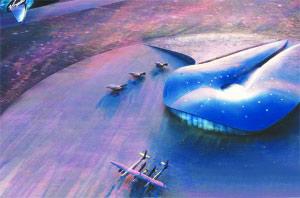 這里奇怪的地貌似乎啟發(fā)了很多企業(yè)家,其中一家企業(yè)的名字叫“飛船公司”,在車間里,飛船正在建造當(dāng)中。這艘飛船是用碳纖維制成,也采用了可回收利用的尼龍和笑氣,它可以轉(zhuǎn)變成一個(gè)“羽毛球”,鼓翅而下,飛回地球。它不像發(fā)射航天飛機(jī)那樣,需要事先安置在發(fā)射臺(tái)等待發(fā)射,而是從有史以來(lái)最大的碳纖維合成材料建造的母機(jī)上發(fā)射。