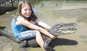 據(jù)悉,“科羅拉多州短吻鱷爬蟲動物公園”中目前養(yǎng)有350來條鱷魚,其中許多鱷魚都長達2.4米、重達270多公斤。雖然短吻鱷是自然界中完美的“殺戮機器”,但這些200多公斤重的兇猛鱷魚在薩曼莎手下就如同是溫馴的“寵物”!9歲的薩曼莎不僅常向游客們表演赤手空拳馴服鱷魚的驚人本領,甚至連美國海軍陸戰(zhàn)隊士兵也慕名而來向她“拜師”學習如何馴服鱷魚的“藝術”!