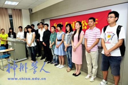 2010年9月19日,在韓中國學(xué)聯(lián)舉辦首屆以“海納百川,有容乃大”為主題的公開納新活動,李忠輝會長及學(xué)聯(lián)各部門的負(fù)責(zé)人擔(dān)任了本次公開納新活動的評審委員。招新工作進(jìn)行得井然有序,同學(xué)們普遍反映效果良好,呈現(xiàn)出一派生氣勃勃的新氣象。