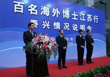 14日,江蘇省泰興市又一次迎來了“百名海外博士江蘇行”活動(dòng)的海外博士們。中共泰興市委、市政府對(duì)遠(yuǎn)道而來的海外博士們表示熱烈歡迎和誠(chéng)摯的感謝。江蘇省人力資源和社會(huì)保障廳副廳長(zhǎng)陳勵(lì)陽(yáng),中共泰興市委書記、市人大常委會(huì)主任張兆江,中共泰興市委副書記、市長(zhǎng)高亞梓等領(lǐng)導(dǎo)出席了此次泰興說明會(huì)和項(xiàng)目洽談會(huì)。