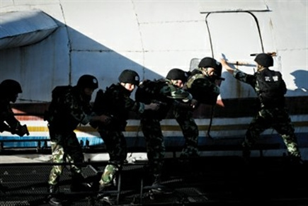 這是武警上?傟(duì)前天組織的一場(chǎng)反劫機(jī)模擬演練。據(jù)了解,組建于2002年7月的武警上?傟(duì)九支隊(duì)反劫機(jī)中隊(duì),是國(guó)內(nèi)第一支武警反劫機(jī)中隊(duì),主要擔(dān)負(fù)江浙滬皖三省一市20個(gè)機(jī)場(chǎng)的地面反劫機(jī)任務(wù)以及處置本市其他暴力、恐怖事件。近年來(lái),該總隊(duì)積極探索現(xiàn)代條件下駐城市部隊(duì)反恐斗爭(zhēng)的特點(diǎn)、規(guī)律,研究相應(yīng)戰(zhàn)法和戰(zhàn)術(shù)手段,通過(guò)設(shè)置各種復(fù)雜情況下反恐反劫持戰(zhàn)斗預(yù)案,開(kāi)展近似實(shí)戰(zhàn)的模擬演練,不斷磨礪尖刀部隊(duì)的鋒芒,提高部隊(duì)的戰(zhàn)斗能力。組建10年來(lái),反劫機(jī)中隊(duì)先后27次參加公安、武警組織的反劫機(jī)和反恐怖事件演練,全部成功處置,56人立功受獎(jiǎng),被譽(yù)為上海武警反恐處突的“拳頭”和“尖刀”。(章樂(lè)平 王小磊 劉天 朱斌)