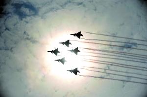 兩年后的八屆航展,“八一”隊已駕駛殲-10炫舞珠海的藍(lán)天!霸谛聶C裝備不久,就輕松淡定地飛向航展這樣的國際舞臺,這不只是對我們裝備的自信,也是對我們這支隊伍的自信”,當(dāng)年“八一”飛行表演隊的飛行員如是說。