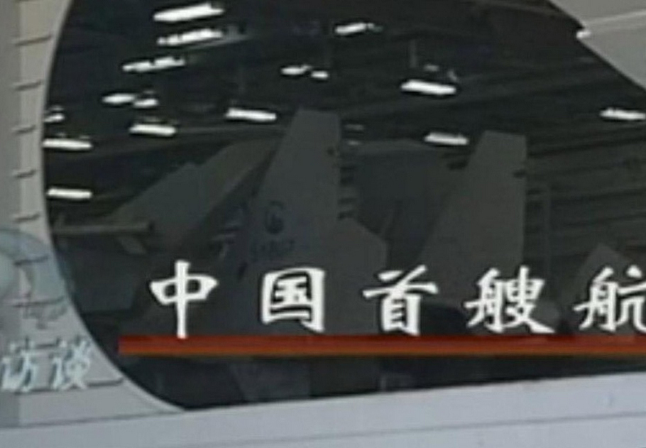 圖為中國(guó)首艘航母機(jī)庫內(nèi)停放的疑似艦載機(jī)。(央視截圖)