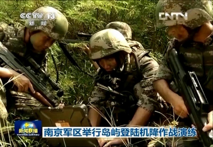 參加演習(xí)的士兵利用電腦終端獲取戰(zhàn)場情報(bào)