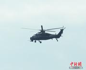 中新網(wǎng)珠海11月11日電(陳海峰) 11日上午,中國武直10武裝直升機(jī)首次在珠海上空公開亮相,并進(jìn)行了適應(yīng)性飛行訓(xùn)練,其做出倒飛、低空盤旋、萊維斯曼翻轉(zhuǎn)等多個精彩動作,在短暫現(xiàn)身后離開航展上空。