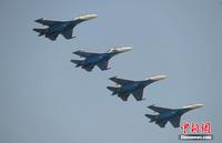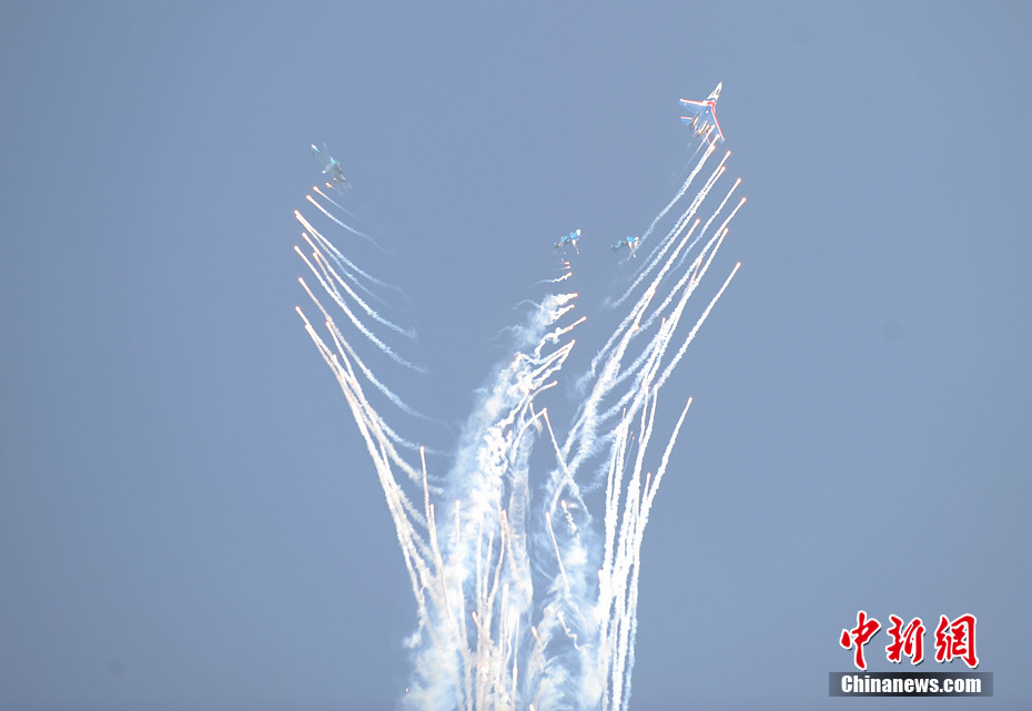 中新網(wǎng)珠海11月12日電(陳海峰)12日下午兩點整,俄羅斯勇士飛行表演隊5架表演機準時啟動進行飛行表演,展示了“加力盤旋”、“躍升半滾倒轉(zhuǎn)”、“向上開花”、“雙機對沖”等精彩動作,為觀眾提供了一場視覺盛宴,體現(xiàn)了蘇27優(yōu)異的機動性能。