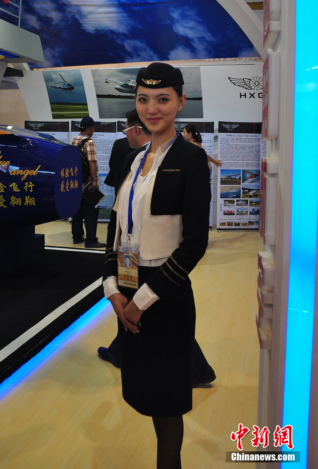 每一屆珠海航展都會有許多佳麗現(xiàn)身,而這次航展上的直升機模特更是讓觀眾大飽眼福。陳海峰 攝