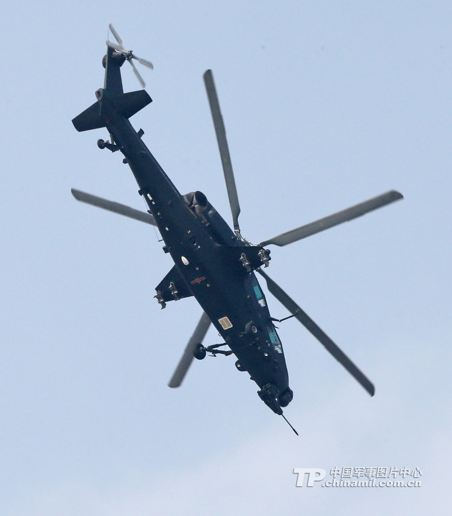 11月13日,我國自主研制生產(chǎn)的武直-10武裝直升機亮相在珠海舉行的第九屆中國國際航空航天博覽會,在飛行表演中展示了這款直升機的優(yōu)良性能。圖為武直-10對地垂直攻擊。記者喬天富 攝