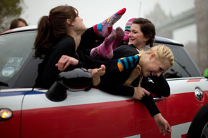 英國迷你小車塞進(jìn)28人