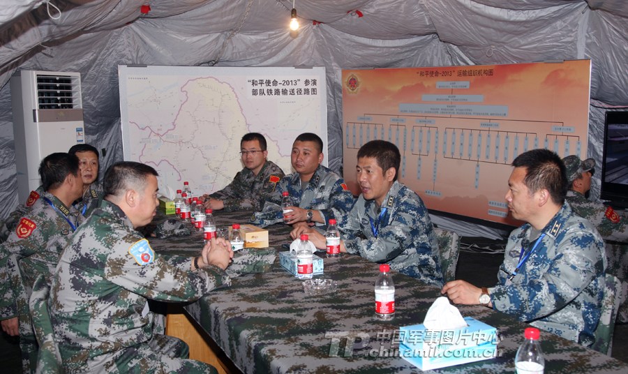 在臨時指揮部中研究鐵路運輸路徑圖。 曹占禮 攝