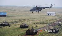 8月8日中午,在俄羅斯車?yán)镅刨e斯克的切巴爾庫爾訓(xùn)練場的實(shí)兵演練場地,“和平使命-2013”中俄聯(lián)合反恐軍事演習(xí)首次合練在風(fēng)雨中按計(jì)劃進(jìn)行。