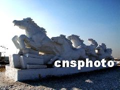 圖:大型雪雕奔馬六駿圖在長春落成