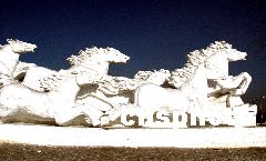 日前,兩座高7米,長20余米的大型雪雕奔馬圖在長春市世紀(jì)廣場落成。該奔馬圖由六匹英俊的奔馬組成,預(yù)示著順利送走馬年迎來羊年,為此吸引了眾多國內(nèi)外游客的視線。樊甲山 攝