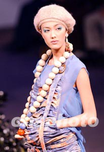 1月17日在香港時(shí)裝節(jié)舉辦的“香港青年時(shí)裝設(shè)計(jì)家創(chuàng)作表演賽2003”上,模特展示青年時(shí)裝設(shè)計(jì)師才華橫溢的時(shí)裝作品。中新社傳真 洪少葵 攝