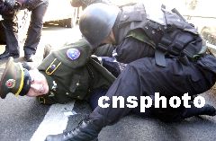 在東四十條橋西側(cè)200米處,3輛警車停放在路中間擋住去路,地面上橫著一排道釘。面對荷槍實彈的民警,“劫持者”終于放棄了抵抗,停下車后,依次跳下車來束手就擒。特警們沖上前去,干凈利落的擒拿動作令周圍不明所以的行人誤以為真的發(fā)生了搶劫案。