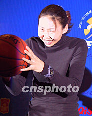 中國(guó)籃協(xié)二十七日晚在河北省秦皇島市舉行2002-2003賽博中國(guó)女子籃球甲級(jí)聯(lián)賽頒獎(jiǎng)典禮,運(yùn)動(dòng)員苗立杰獲得常規(guī)賽最有價(jià)值球員及得分王稱號(hào)。作者:廖文靜