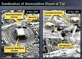 這樣的話,他們就可以聲稱那里什么也沒有了。核查人員就可以看他們想看的一切,但他們將找不到任何證據(jù)。伊拉克隱藏事實真相的努力絕不僅僅是一件兩件事情,相反有許多。這只是過去12年間伊拉克所執(zhí)行的逃避、欺騙政策的冰山之一角,這是伊拉克政權(quán)最高層所制定的政策。