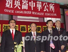 二月十五日農(nóng)歷正月十五下午,有百年歷史、在僑界有廣泛影響的紐英倫中華公所決定升中華人民共和國國旗。在升旗儀式上,紐英倫中華公所主席黃兆祥(左一)、中國駐紐約總領(lǐng)事張宏喜(左二)、中國駐紐約副總領(lǐng)事黃惠康(右二)、紐英倫中華公所首席執(zhí)行官周西民(右一)與當(dāng)?shù)貎S胞高唱《歌唱祖國》。作者:陳建