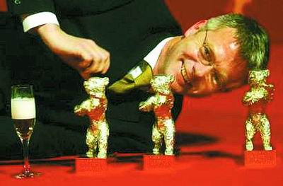 這次中國電影還是有收獲的,張藝謀捧得了“阿爾弗雷德·鮑爾(柏林電影節(jié)創(chuàng)辦人)大獎”。據(jù)透露,《英雄》未捧“熊”,跟本屆評委會主席伊戈揚(yáng)偏愛人性題材的個人風(fēng)格頗有關(guān)系。另一部由李楊編導(dǎo)描寫中國北方某礦區(qū)一起案件的《盲井》獲藝術(shù)貢獻(xiàn)銀熊獎。