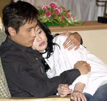 據(jù)韓國媒體報道,這兩位明星從25日晚10時開始在京畿道日山SBS炭峴演播廳拍攝第13集中的“初夜”鏡頭,兩人經(jīng)過10多個小時的“努力”,才結(jié)出“愛情的果實”。