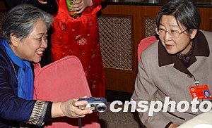 全國政協(xié)委員韋鈺(左)在政協(xié)慶祝三八婦女節(jié)上和毛澤東的女兒李敏(右)切磋攝影技巧。作者:盛佳鵬