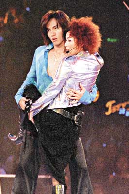 鄭秀文在其表演環(huán)節(jié)中,先獨唱一首,再介紹一身殺手打扮的Jerry出來為她伴舞。隨即二人還合唱《月亮代表我的心》,手拖手外,還邊唱邊舞,當中不乏貼身舞姿,Jerry更一手抱著Sammi的大腿。