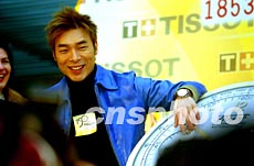 香港明星許志安(左)作為瑞士天梭表TISSOT代言人,十四日在上海新天地出席該表150周年生日慶典,由此揭開(kāi)該表在世界巡回展的中國(guó)區(qū)第一站。作者:劉殊瑾
