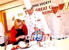 為宣傳即將在4月舉辦的"第12屆全港廚師精英大匯演",城中多位名廚18日在君悅酒店與協(xié)康會(huì)小朋友一起參與別開生面的廚藝比賽。洪少葵 攝