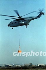 圖:中國(guó)海軍艦載直升機(jī)進(jìn)行海陸補(bǔ)給訓(xùn)練