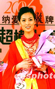 由廣東電視臺(tái)主辦、中國(guó)概念九八模特經(jīng)紀(jì)有限公司協(xié)辦的“納愛(ài)斯雕牌2003超級(jí)模特選拔賽”,三月二十二日晚在廣州舉行決賽。中新社傳真 錢(qián)興強(qiáng) 攝